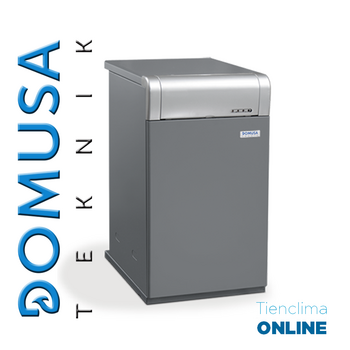 Caldera de pie a gasóleo Domusa SIRENA MIX DUO HFD 30, fabricada en hierro fundido, para calefacción y ACS, con una potencia térmica de 29.3 kW. Bajo NOx según ErP 2018. Clase B.
